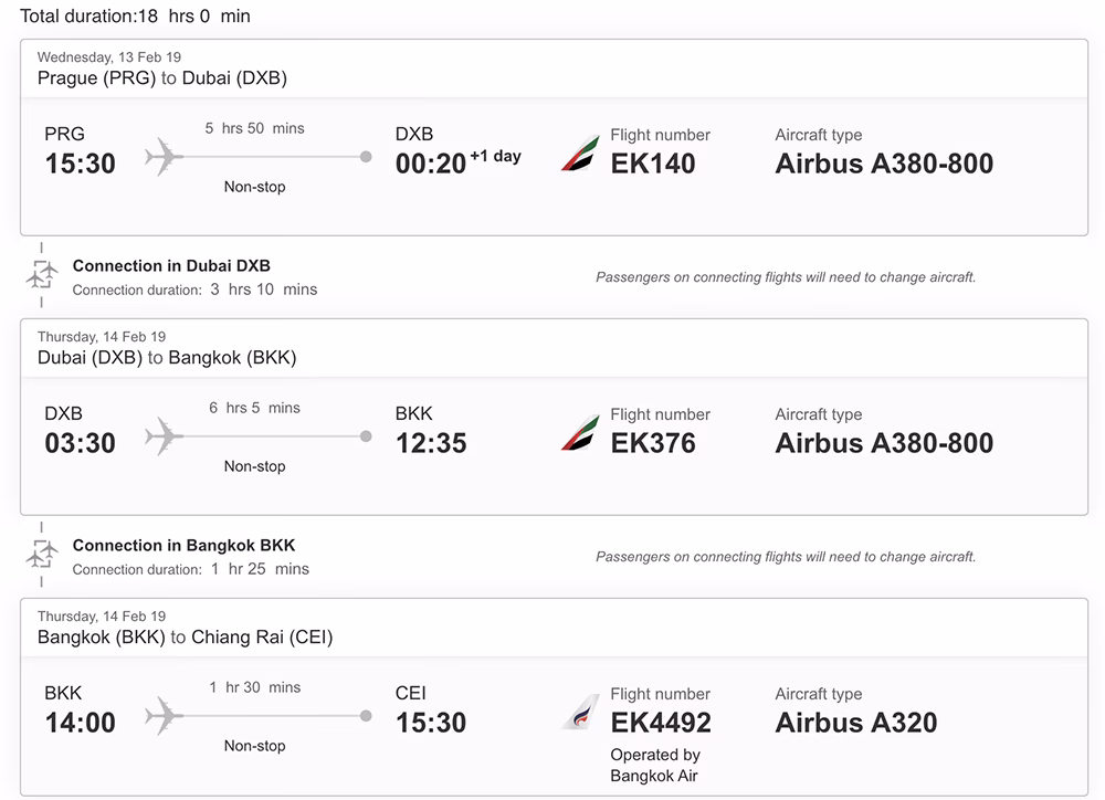Pokud se chcete vyhnout komplikacím s přestupem v Bangkoku s jeho dvěma letišti a doletět rovnou buď k plážím na jih, nebo do Chiang Mai na sever, máte několik možností. Tou nejjednodušší jsou přímé lety z Evropy nebo z letišť v Perském zálivu, což v obou případech znamená po cestě z Prahy jeden přestup.
